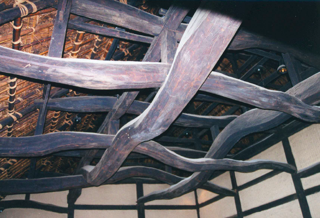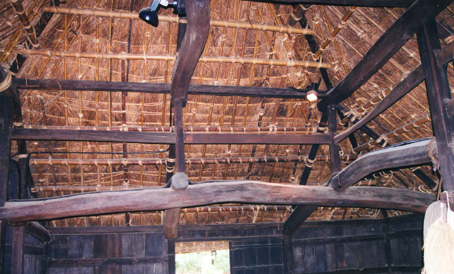 The rush thatch roofs are beautifully trimmed and set. Of particular note are the natural live shaped logs, unsawn, that are then patterned and joined to produce and level and square building.